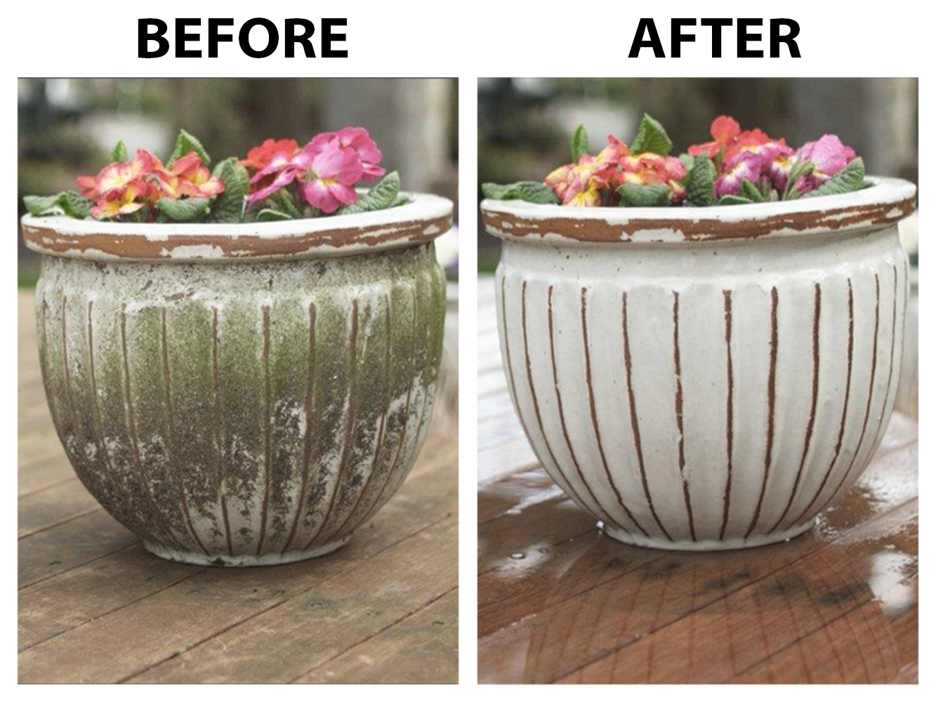 - Cleans grimy green, slippery black, algae moss and mold from all outdoor surfaces