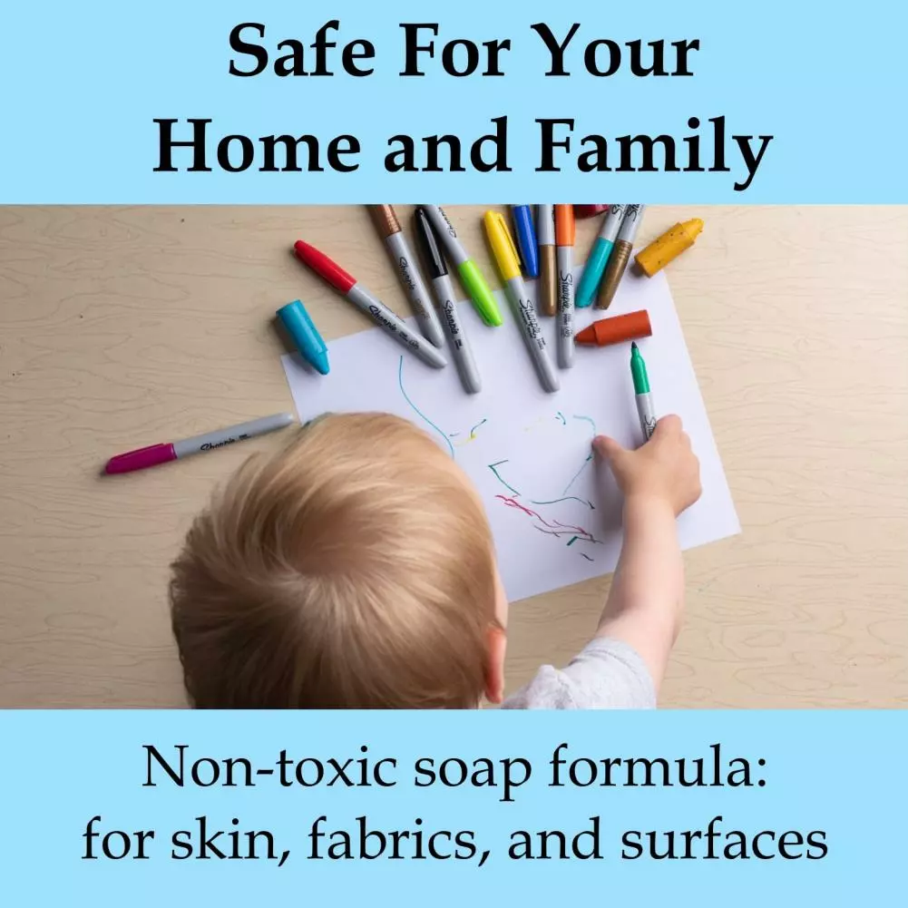 - Non toxic soap formula – safe to use on skin, surfaces, and all fabrics