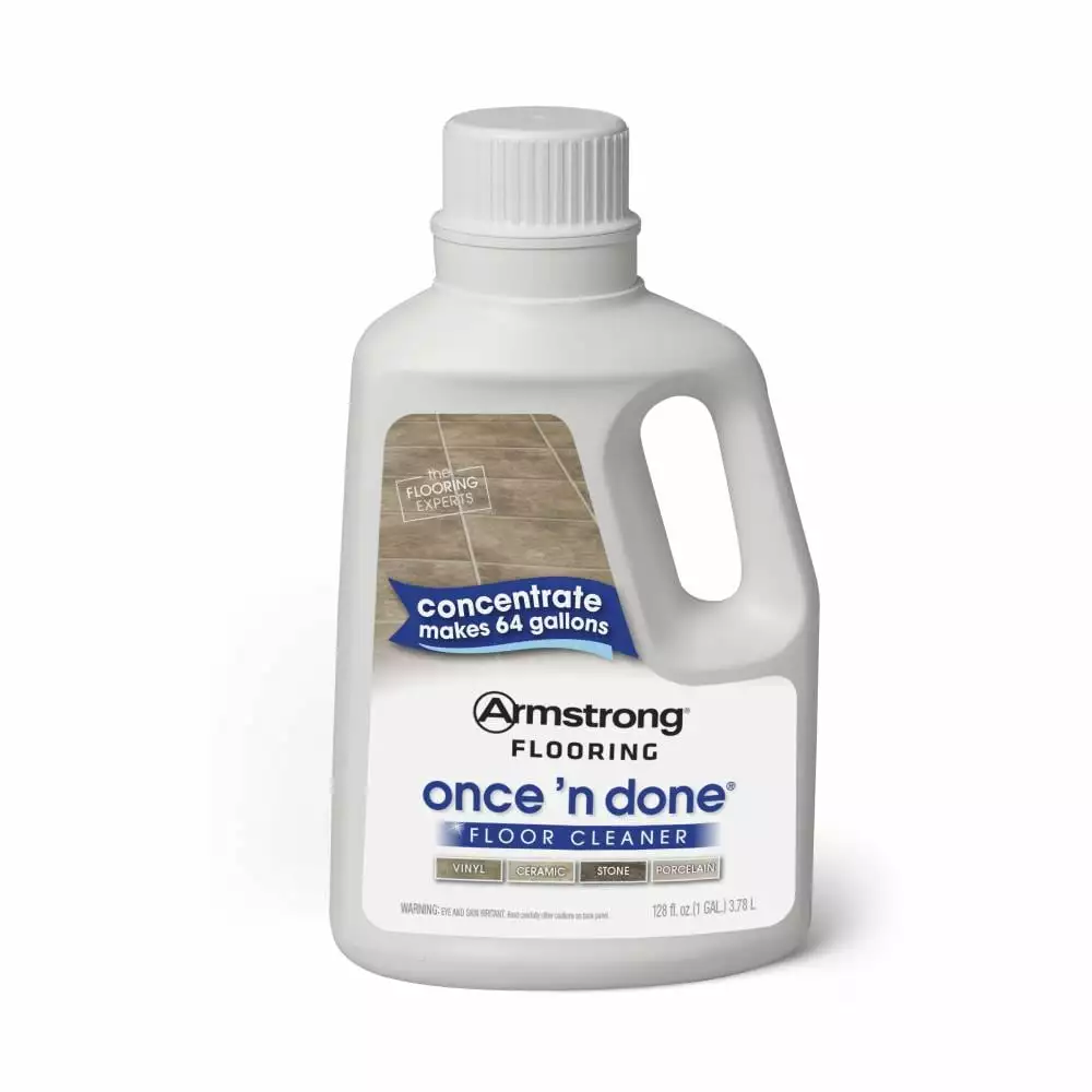 All you need to clean your no-wax vinyl, ceramic, marble, and stone floors is Once ‘n Done Floor Cleaner from Armstrong Flooring. The no-rinse formula leaves no dulling, sticky residue and is designed to keep your vinyl floors looking as beautiful as the day they were installed.
