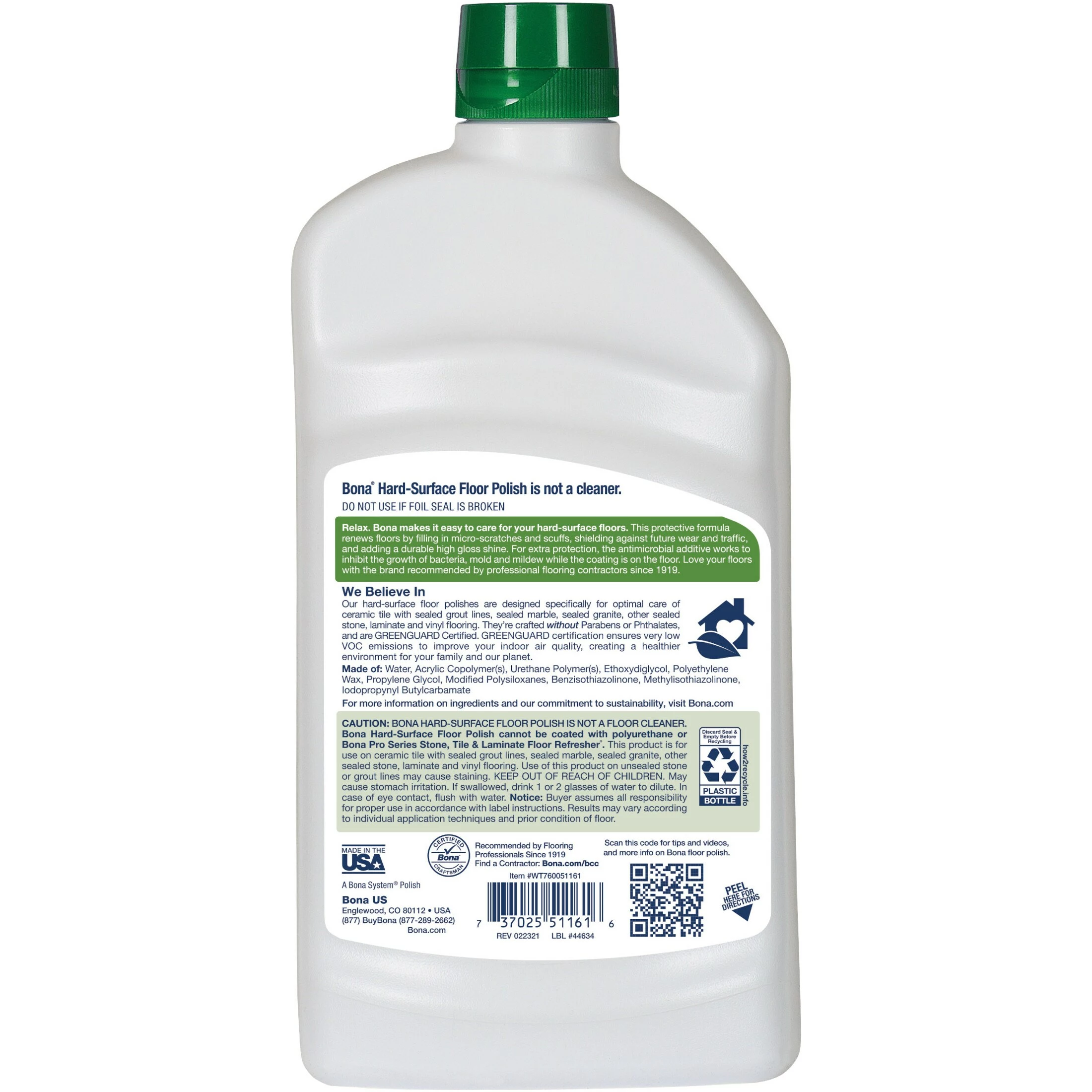 Bona® Hard-Surface Floor Polish offers a protective formula that renews floors by filling in micro-scratches and scuffs, shielding against future wear and traffic, and adding a durable high gloss shine. For extra protection, the antimicrobial additive works to inhibit the growth of bacteria, mold and mildew while the coating is on the floor. Use every 2-4 months to keep floors revitalized and looking their best. Covers about 500 square feet.