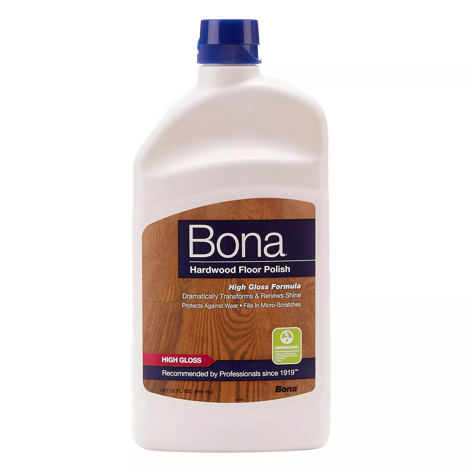 Bona® Hardwood Floor Polish offers a protective formula that renews floors by filling in micro-scratches and scuffs, shielding against future wear and traffic, and adding a durable high gloss shine. For extra protection, the antimicrobial additive works to inhibit the growth of bacteria, mold and mildew while the coating is on the floor. Use every 2-4 months to keep floors revitalized and looking their best. Covers about 500 sq. feet.