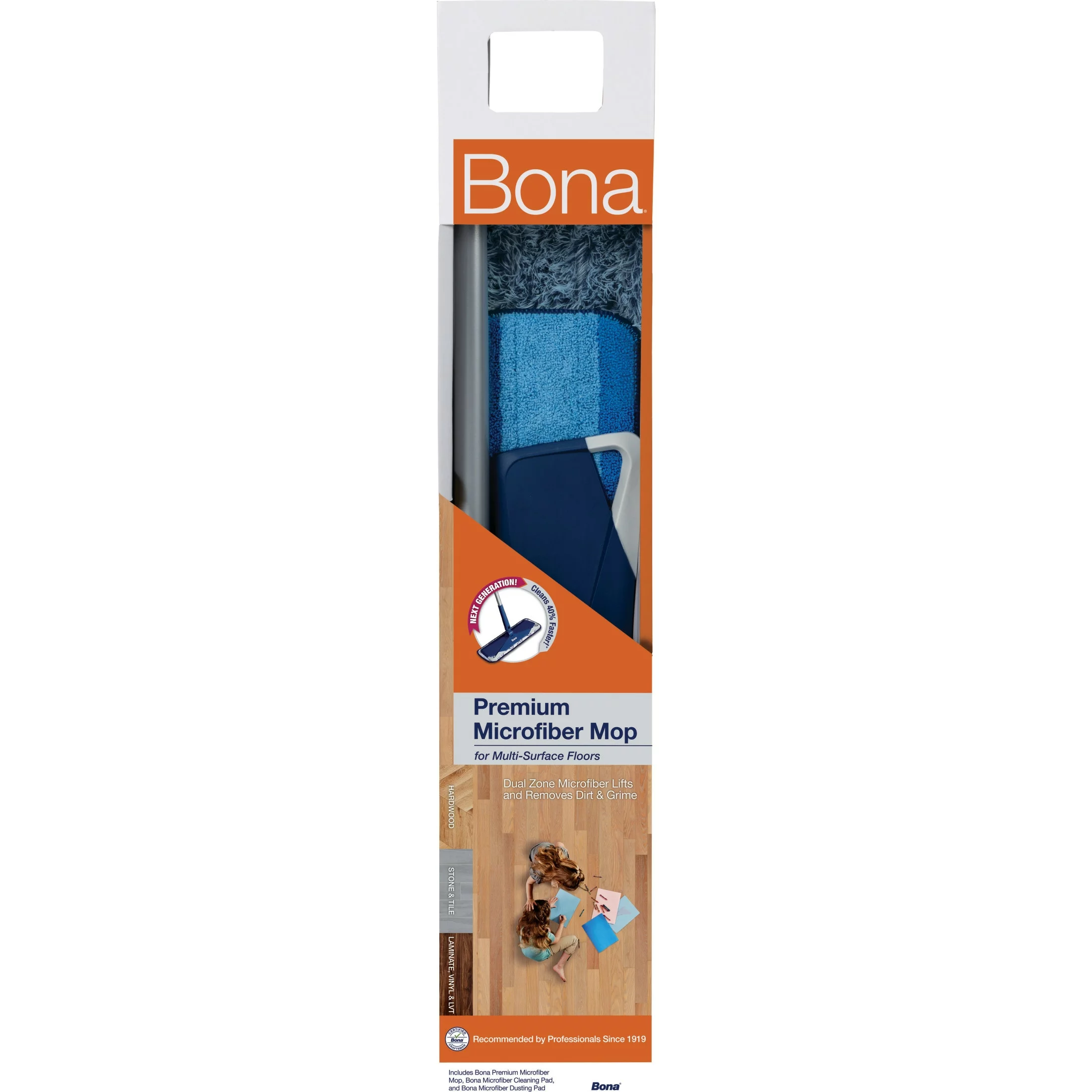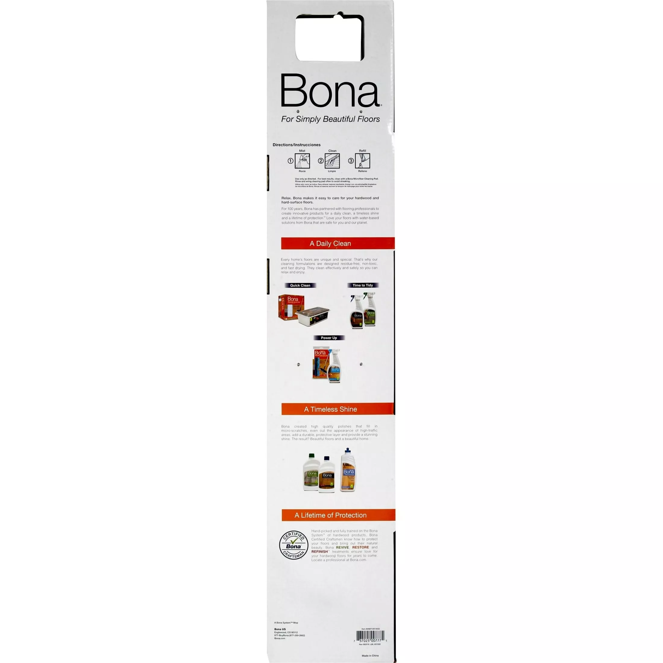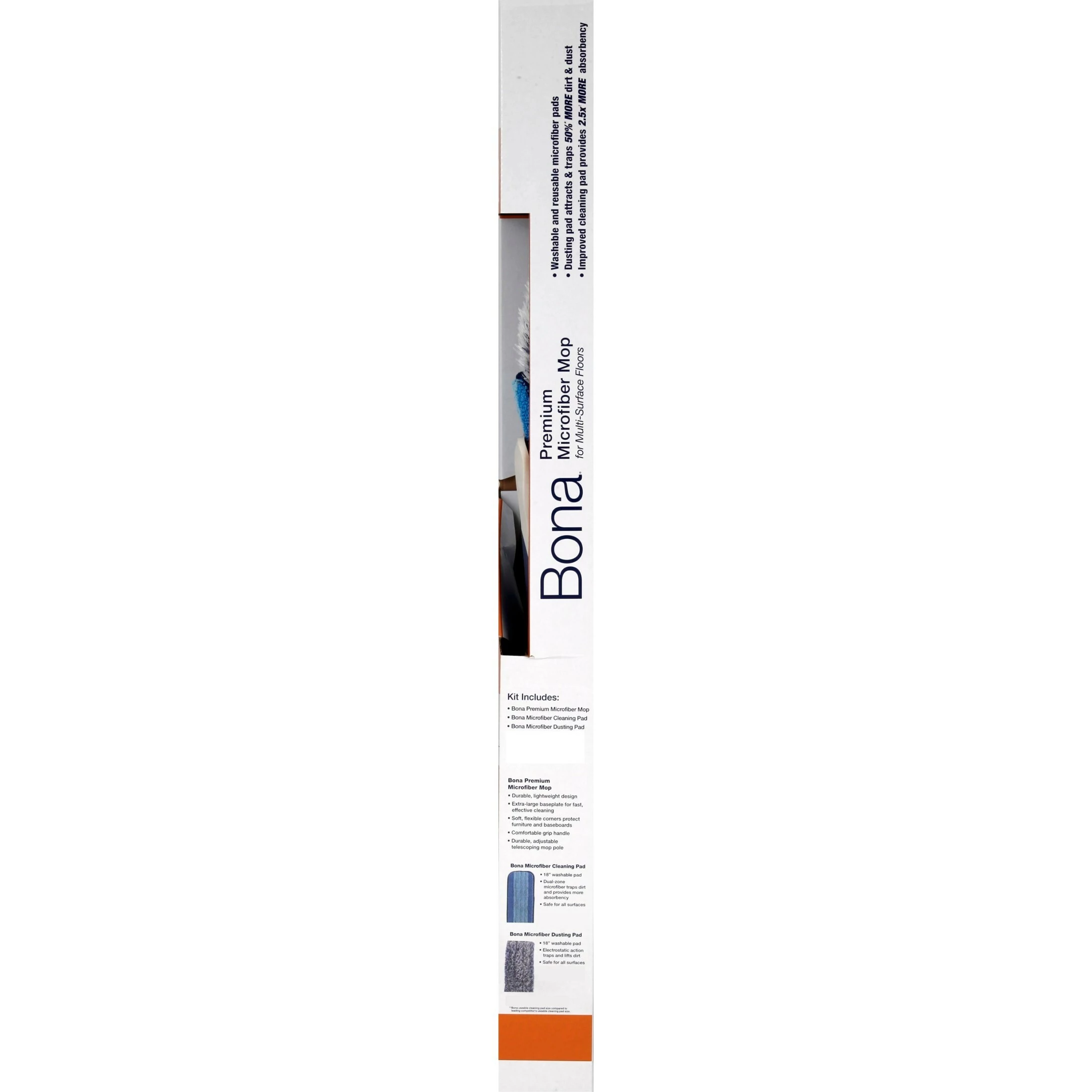 The Bona® Premium Microfiber Floor Mop, with a durable telescoping mop handle and extra-large mop head, provides an easy and quick way to clean your floors. Rubberized mop head corners protect furniture and baseboards from damage. The Bona® Microfiber Cleaning Pad features a unique design with dual zone cleaning action. The Bona® Microfiber Dusting Pad reaches wherever dust settles. Designed to attract and lock away dust, pet hair, micro-particles, and common household allergens from your floors’ surface.