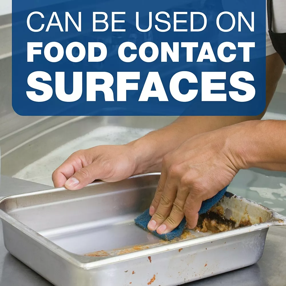 - Commercial degreaser can be used on food-contact surfaces when followed by rinsing with water