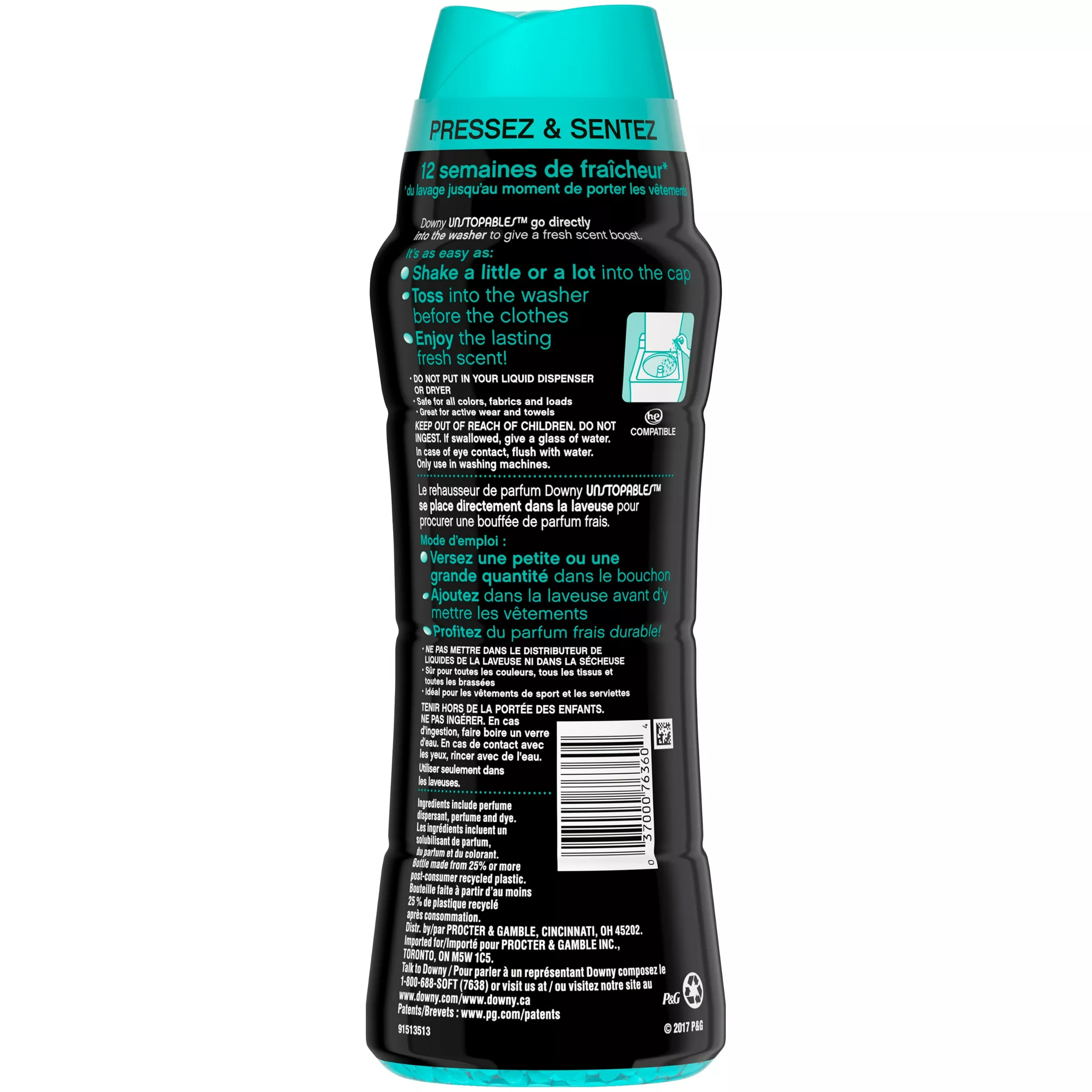 Unstopables fresh In-wash scent booster beads are small laundry scent beads that work inside your washing machine, giving your laundry up to 12 weeks of freshness. Before adding clothes, simply shake as many Unstopables scent beads as desired into the cap, and then toss into the washer drum. Use scent booster beads along with your laundry detergent and fabric softener for long-lasting freshness. Add to each load of laundry for fresh, delightful-smelling clothes, sheets, and towels. It’s a fresh too feisty to quit.