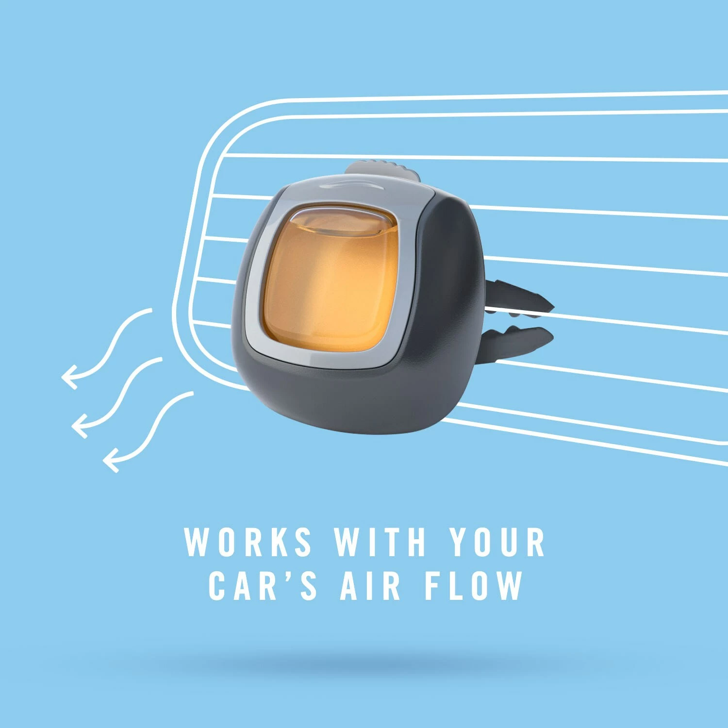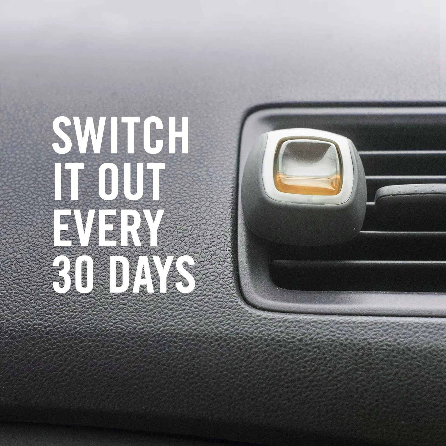 Car smelly passengers and fast food bags… you can take them out of your car, but their odors still chase you around town. Kick ’em to the curb with car vent clips, and eliminate odors trapped in your car, minivan, or ice cream truck. These tiny car vent air fresheners have incredible odor blockers and odor eliminators that remove all those stinks and smells built up from your longest, commute-est days. Simply push the vent clip firmly until you hear it click to activate fragrance, then clip onto your car vent and drive stink-free for a whole 30 days. So, freshen up your ride and breathe happy, no matter where the road takes you. Cleans away vehicle odors with odor clear technology so they’re gone for good. Simply attach this car air freshener to the air vent to begin cleaning your car of odors and slowly release a light, fresh scent for up to 30 days. The scent dial puts you in the driver’s seat, allowing you to select the perfect amount of freshness for you and your passengers. Don’t give odors a ride. Eliminate them with car vent clips.