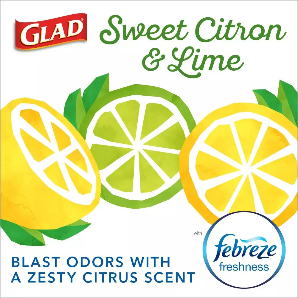 - LONG LASTING ODOR CONTROL: Be the champion of trash with these durable bags that keep your kitchen free of noxious trash odors with a steady release of Sweet Citron and Lime with Febreze Freshness