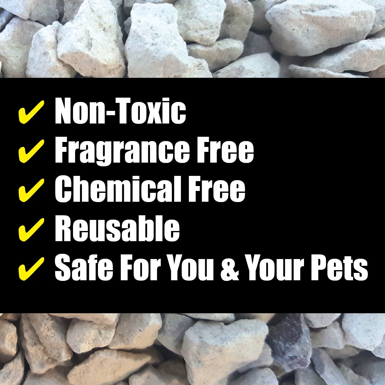 - Safe for You and Your Pets – Gonzo Odor Eliminator Rocks are all-natural minerals that are chemical-free and non-toxic; These environmentally safe rocks are a safe and natural alternative to other air fresheners and are safe for your children and pets