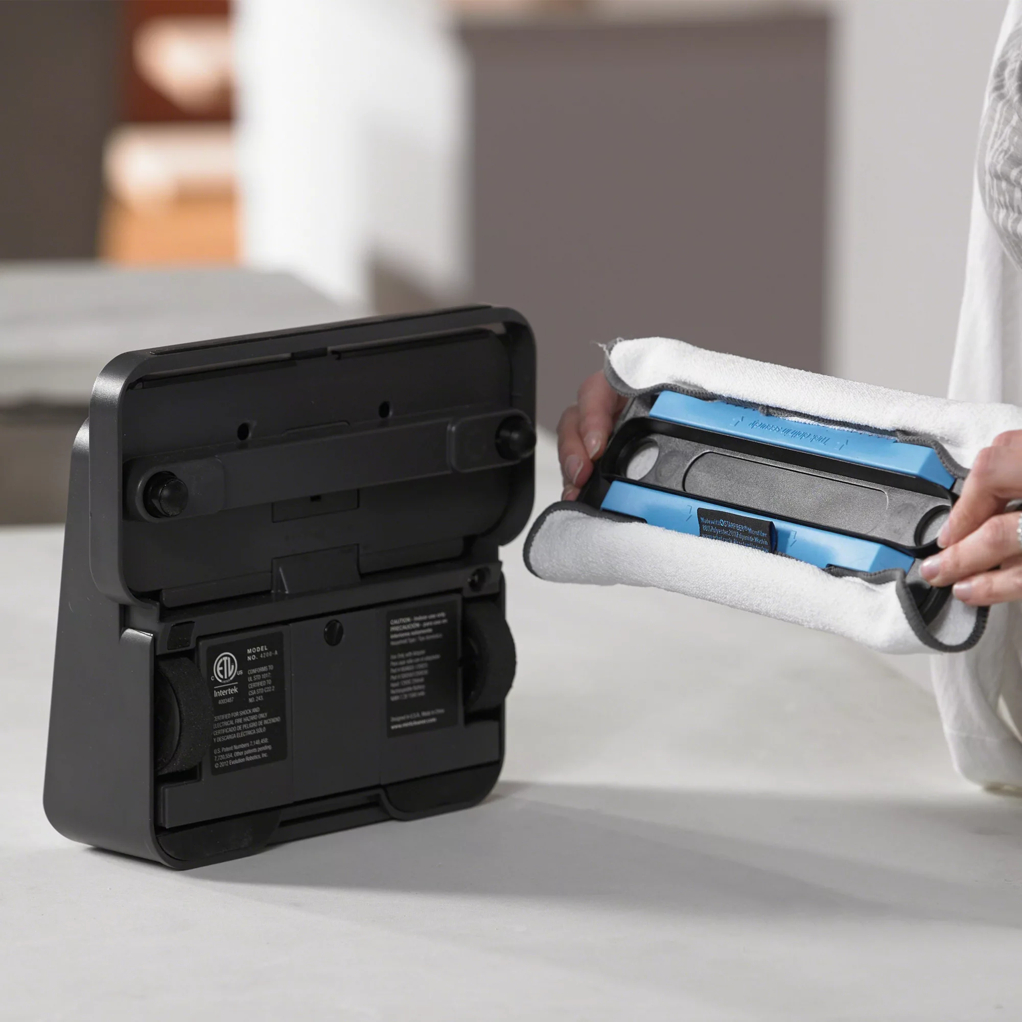 - Reusable microfiber cleaning cloths included; one dry sweeping cloth and one damp mopping cloth