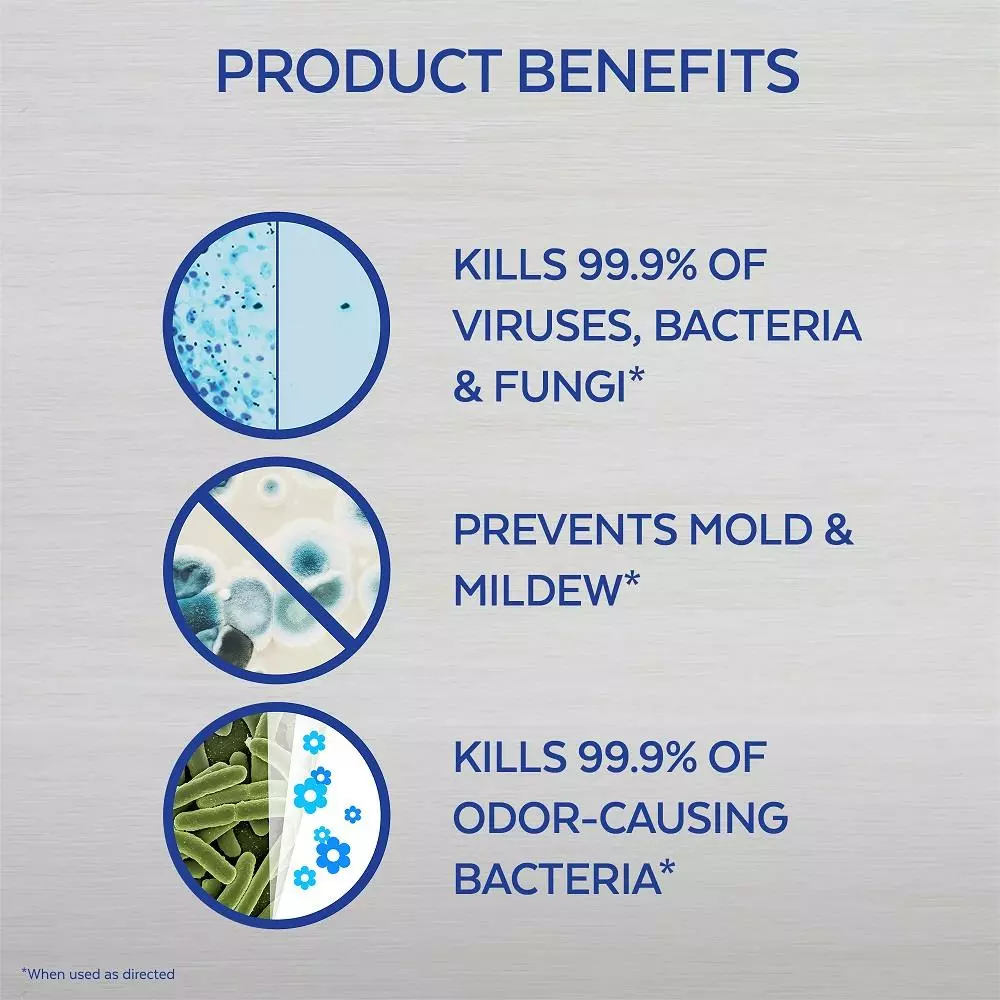 - Kills 99.9% of cold and flu viruses, odor-causing bacteria when used as directed