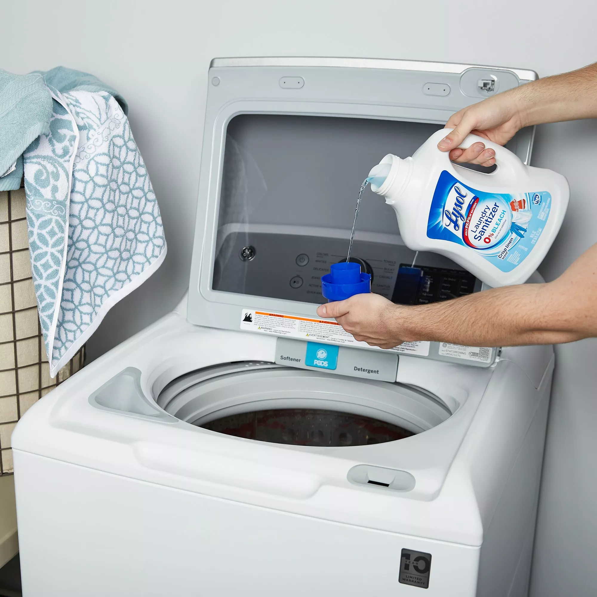 Our clothes are in constant contact with bacteria throughout our day-to-day activities, for example through contact with contaminated surfaces, other people and our own bodies. Bacteria can spread from one fabric to another in the laundry basket, from the washing-machine drum to the next load. Some of these bacteria can survive following the wash cycle. When it comes to certain laundry loads such as children’s clothes or sportswear, you want to eliminate bacteria that may cause illnesses and create lingering bad smells. But detergents alone don’t actually kill all bacteria. Introducing Lysol laundry sanitizer, an additive specially designed to kill 99.9% of bacteria in laundry (when used as directed). Simply add Lysol laundry sanitizer to your rinse cycle. It does not contain any chlorine bleach and even works in cold water so is safe to use on most fabrics including whites, colors and darks.