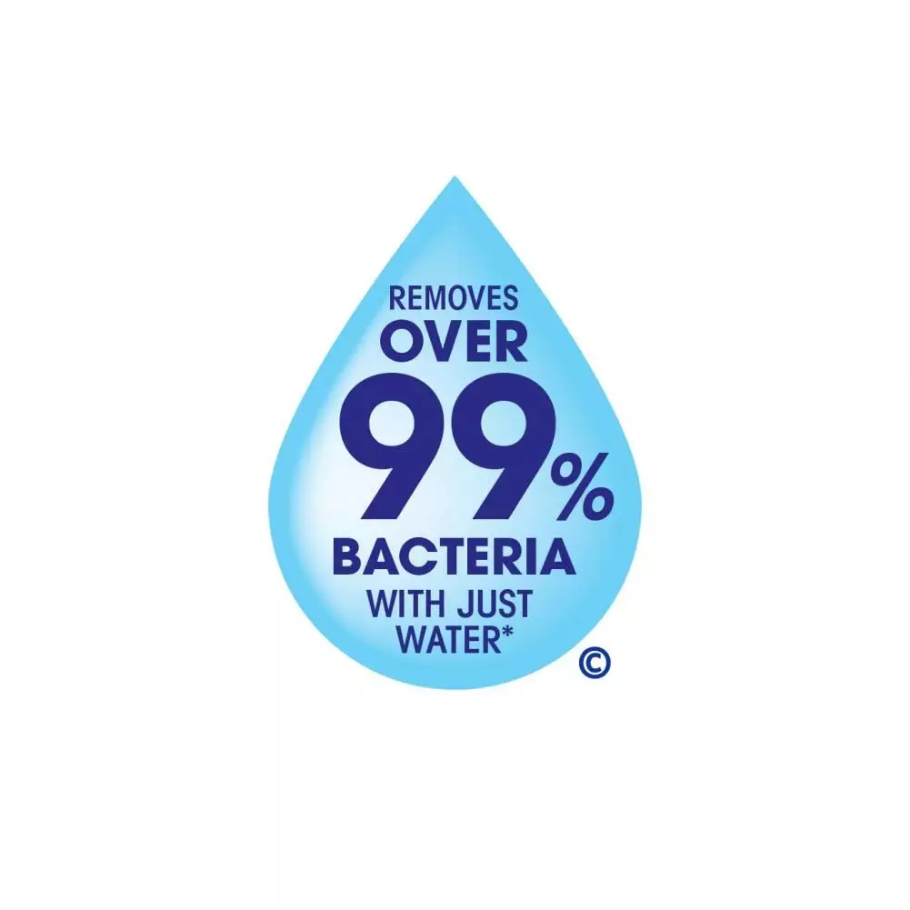 - Removes over 99% of bacteria with just water
