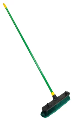 Made for indoor and outdoor use, this broom is ideal for medium textured surfaces. The broom’s fibers are a combination of stiff inner fibers that handle concrete, asphalt, and wood, and soft outer fibers that sweep fine dirt and dust from all surfaces. The fibers are set in a quality, 18-in resin block that won’t warp, rot or crack. A 60” steel handle completes the broom set and includes a hang-up feature for off-the-floor storage.