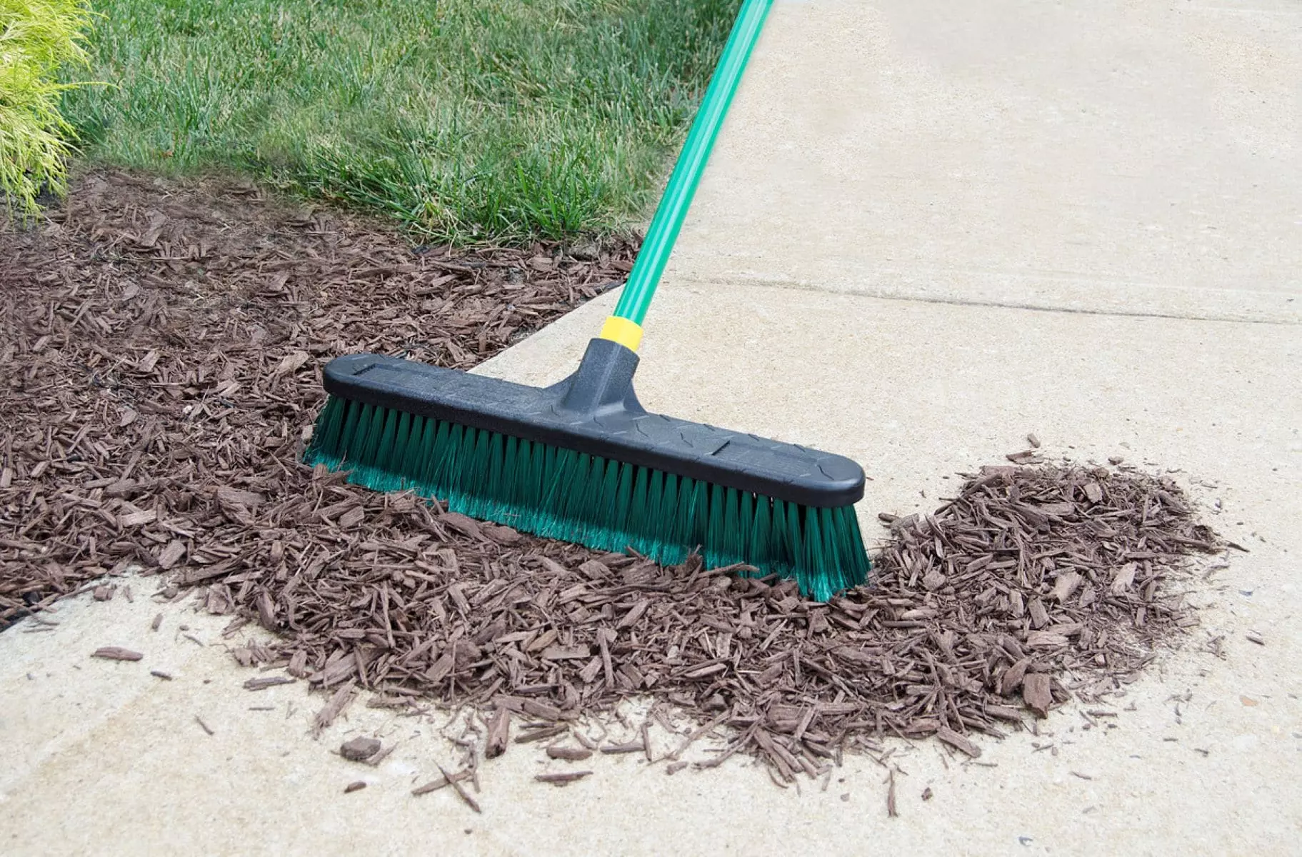 - Multi-surface push broom sweeps sand, mulch, grass clippings, and drywall debris