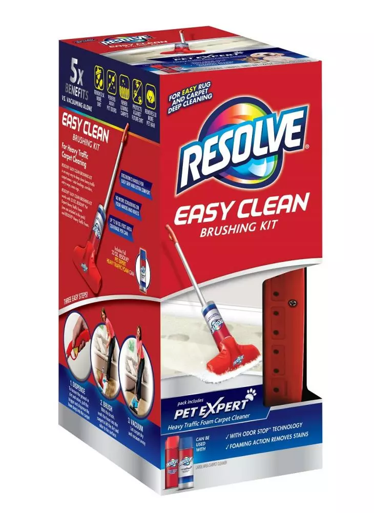 Resolve easy clean carpet cleaning system is designed with you in mind. Easy clean pro makes it easy to deep clean the most frequently used and high traffic carpet areas in your home – stair landings, corridors, entry ways, and small area rugs. Resolve easy clean pro works exclusively with 22 oz Resolve high traffic foam (1 can included in this pack) and Resolve pet high traffic foam. The foam has more dirt fighting power vs the previous Resolve high traffic foam formula. No more scrubbing on your hands and knees! The upright brush makes cleaning easier and there is a new ergonomic handle for easy grip and extra comfort.