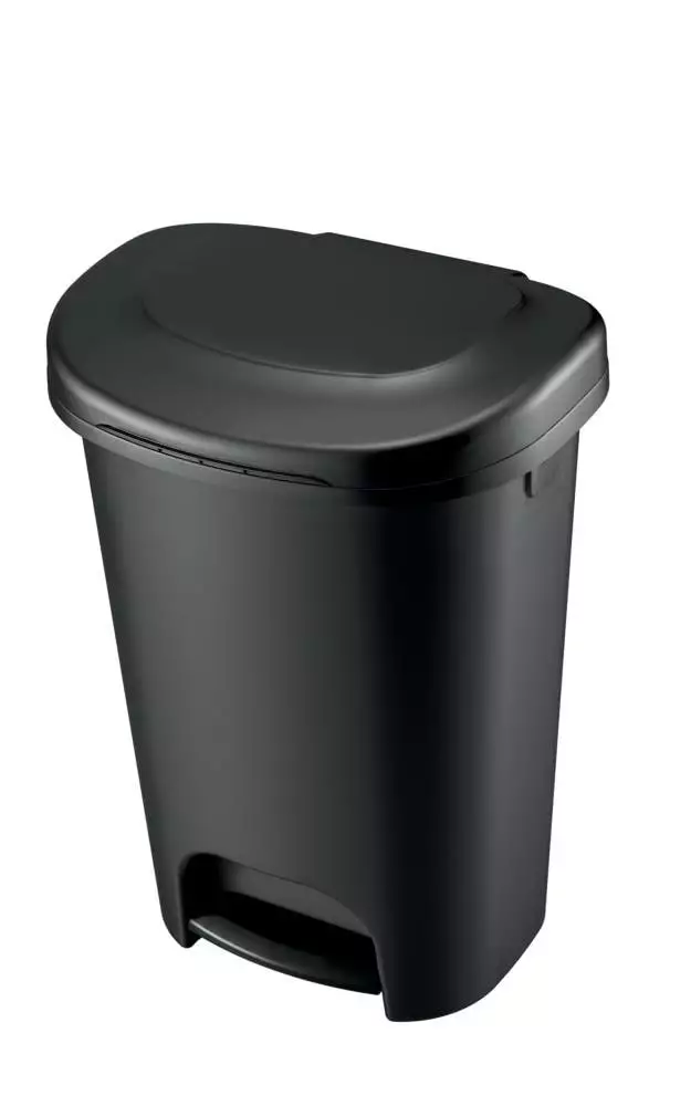 The Rubbermaid® 13-gal Black Step-On is a touch-free, simple solution for your kitchen waste. The foot pedal allows for hands-free operation to reduce the spread of germs. The Linerlock™ bands hold liner bags in place to prevent slipping and messes, while the smooth construction keeps the container easy to clean.
