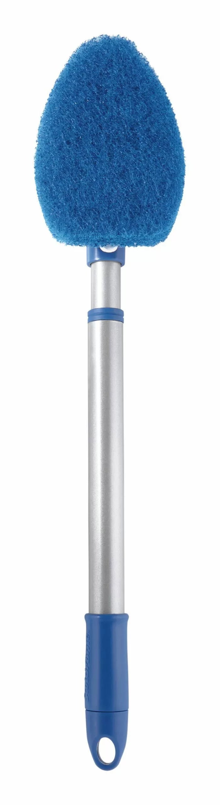 Scotch-Brite® Shower Scrubber removes hard water spots and soap scum without chemicals. The long handle allows you to better reach all areas of your shower and tub. Refills are available for the handle in both the Soap Scum Eraser and a Non-Scratch Scrubber.