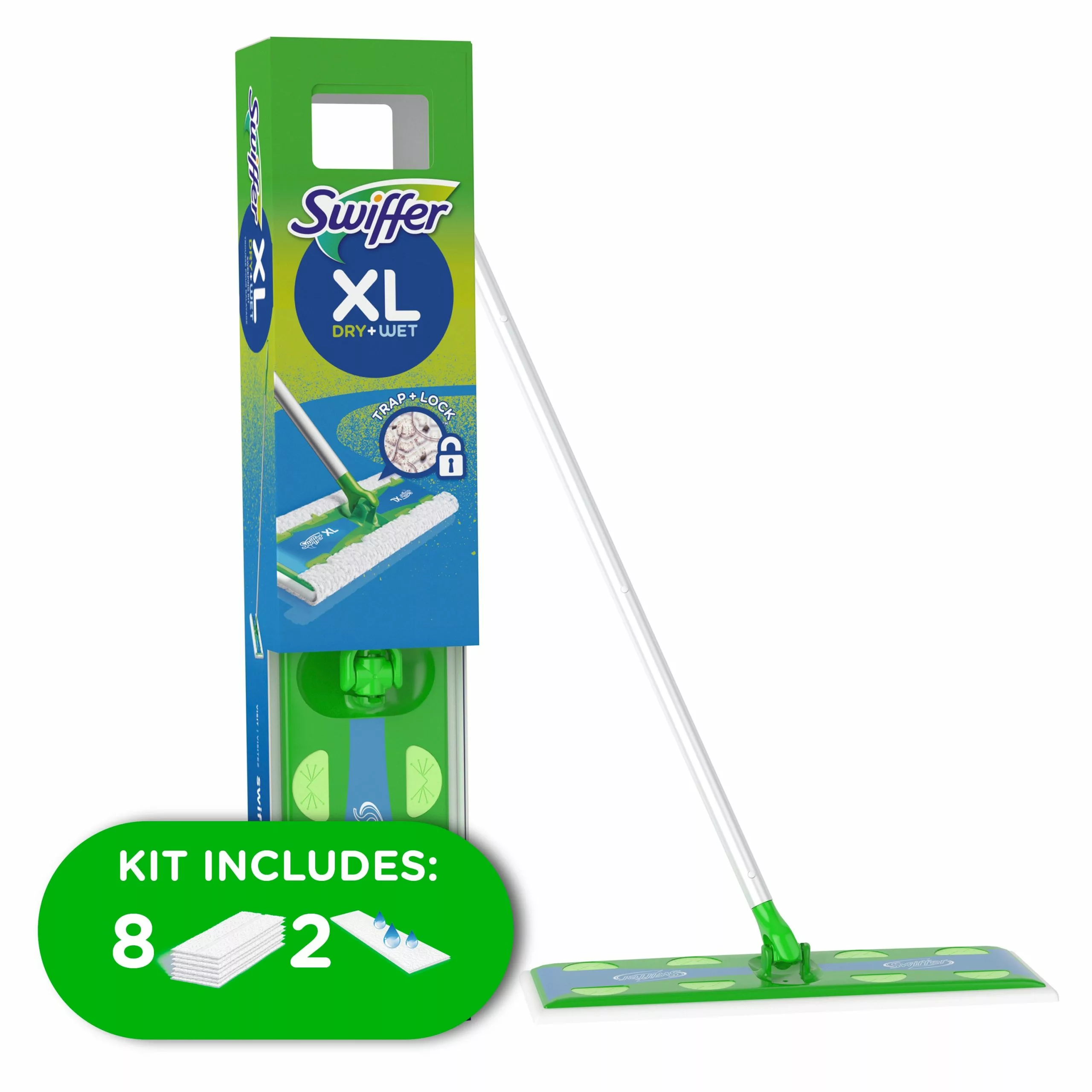 - Starter kit includes 1 sweeper, 8 XL dry sweeping cloths, 2 XL wet mopping pads