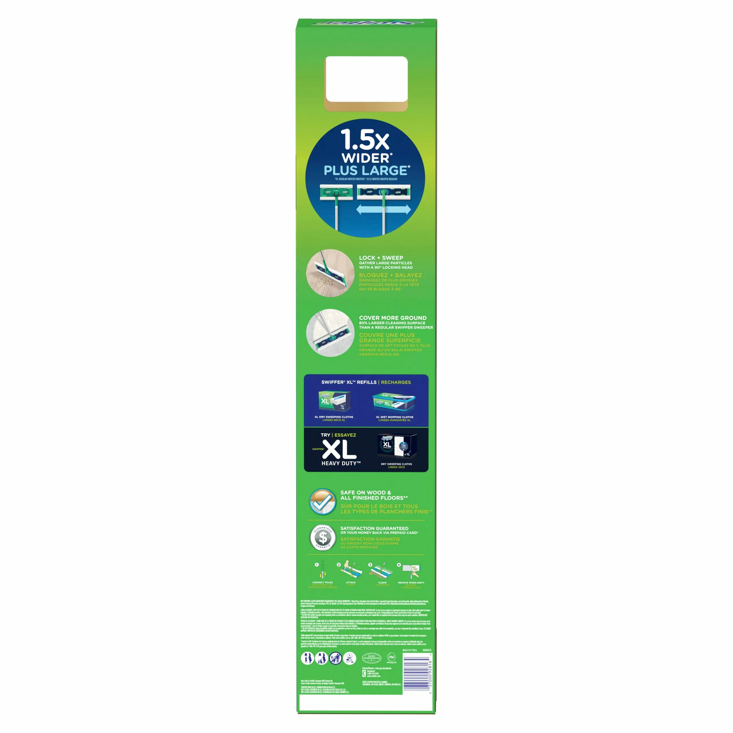 Sweeper XL is 1.5X wider than our regular Swiffer sweeper. It traps and locks even more dirt, dust and hair with each swipe.