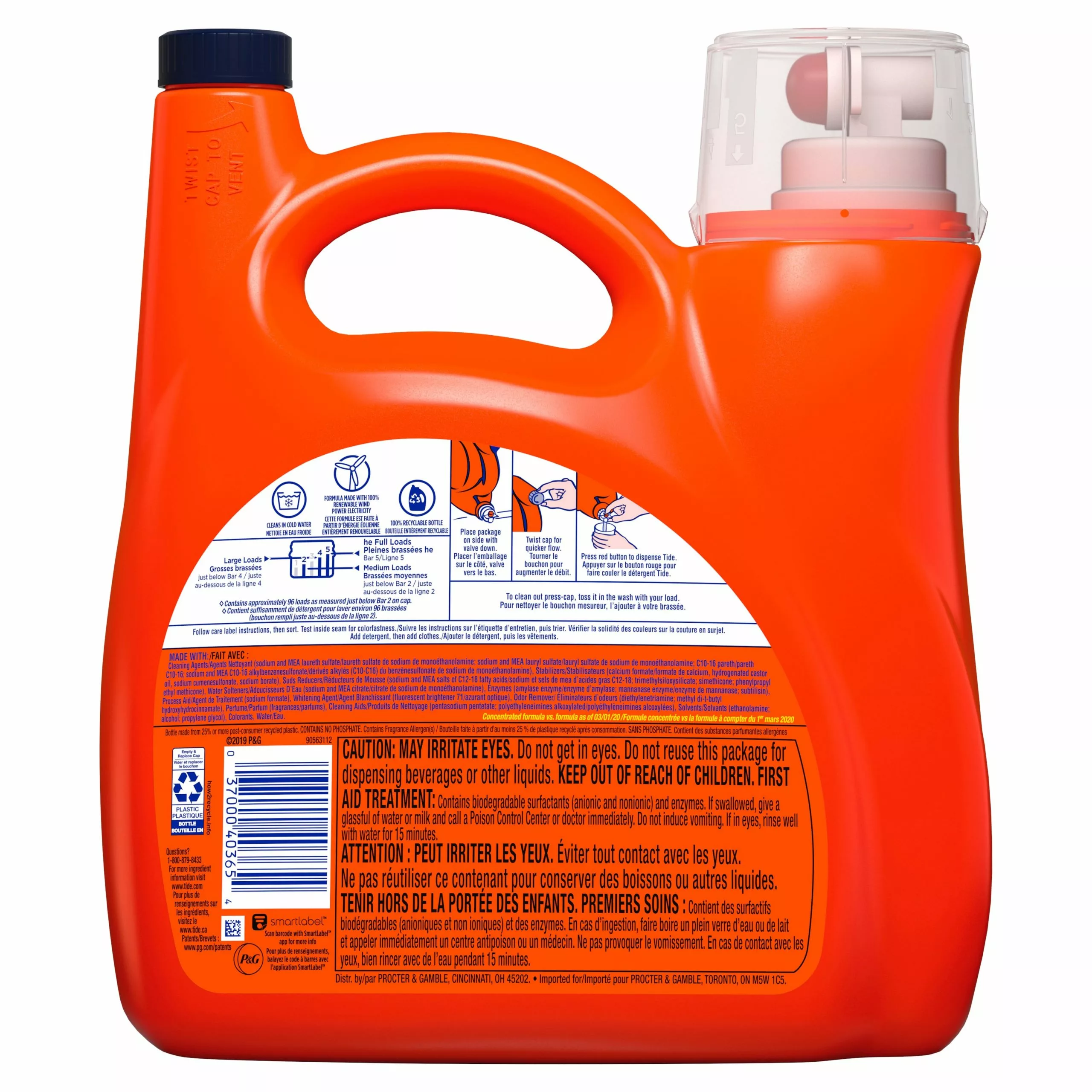 This liquid laundry detergent now has increasing cleaning power. The improved formula is re engineered to attack tough body soils. The turbo clean detergents feature smart suds™ technology. The quick-collapsing suds clean faster and rinse out quicker, even in cold cycles. This laundry detergent keeps your whites white and your colors colorful with a refreshing scent, wash after wash.