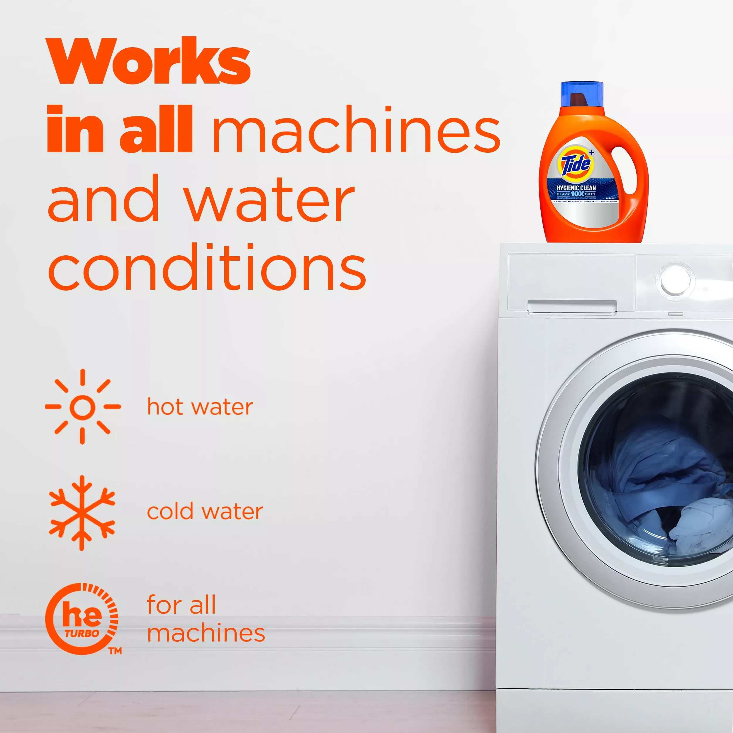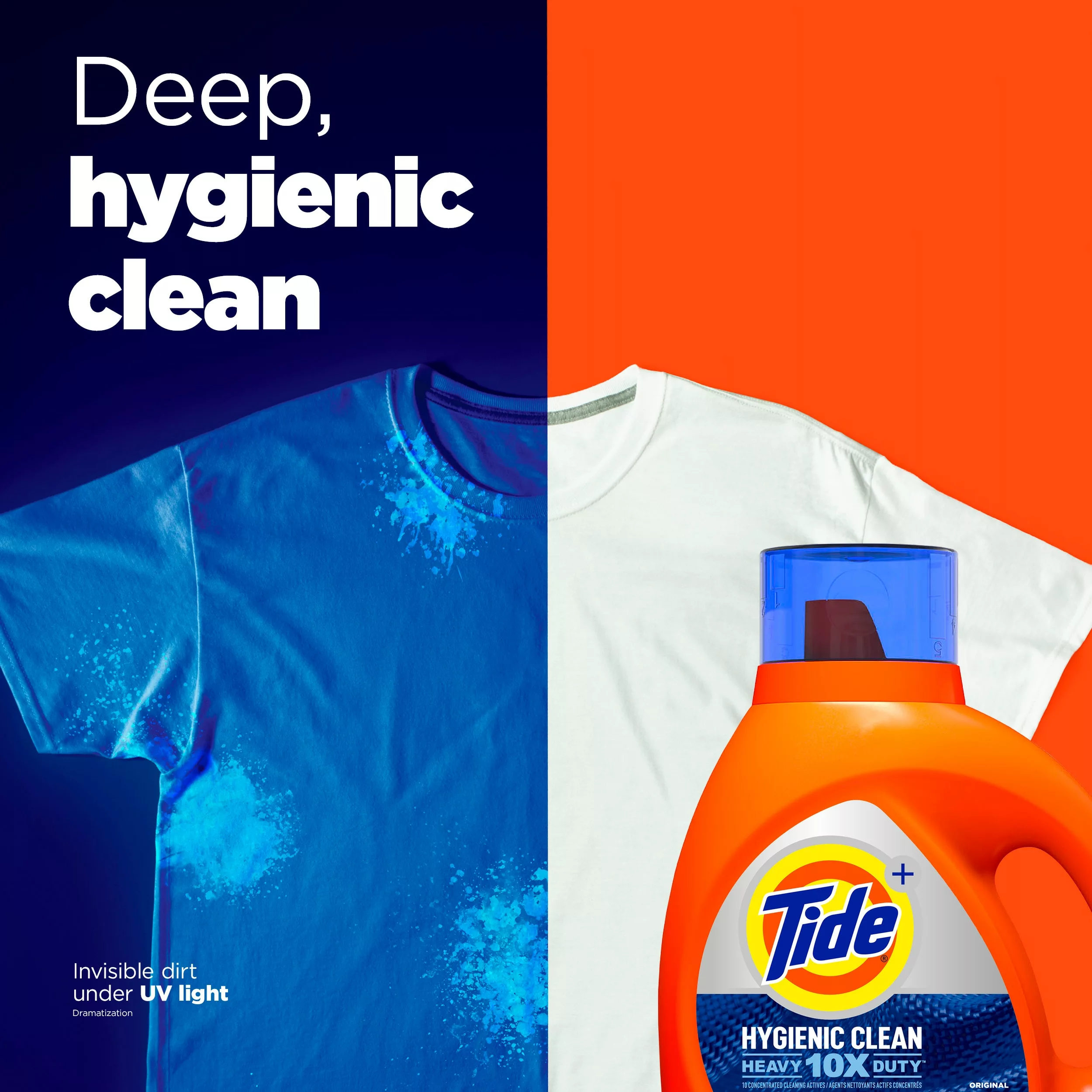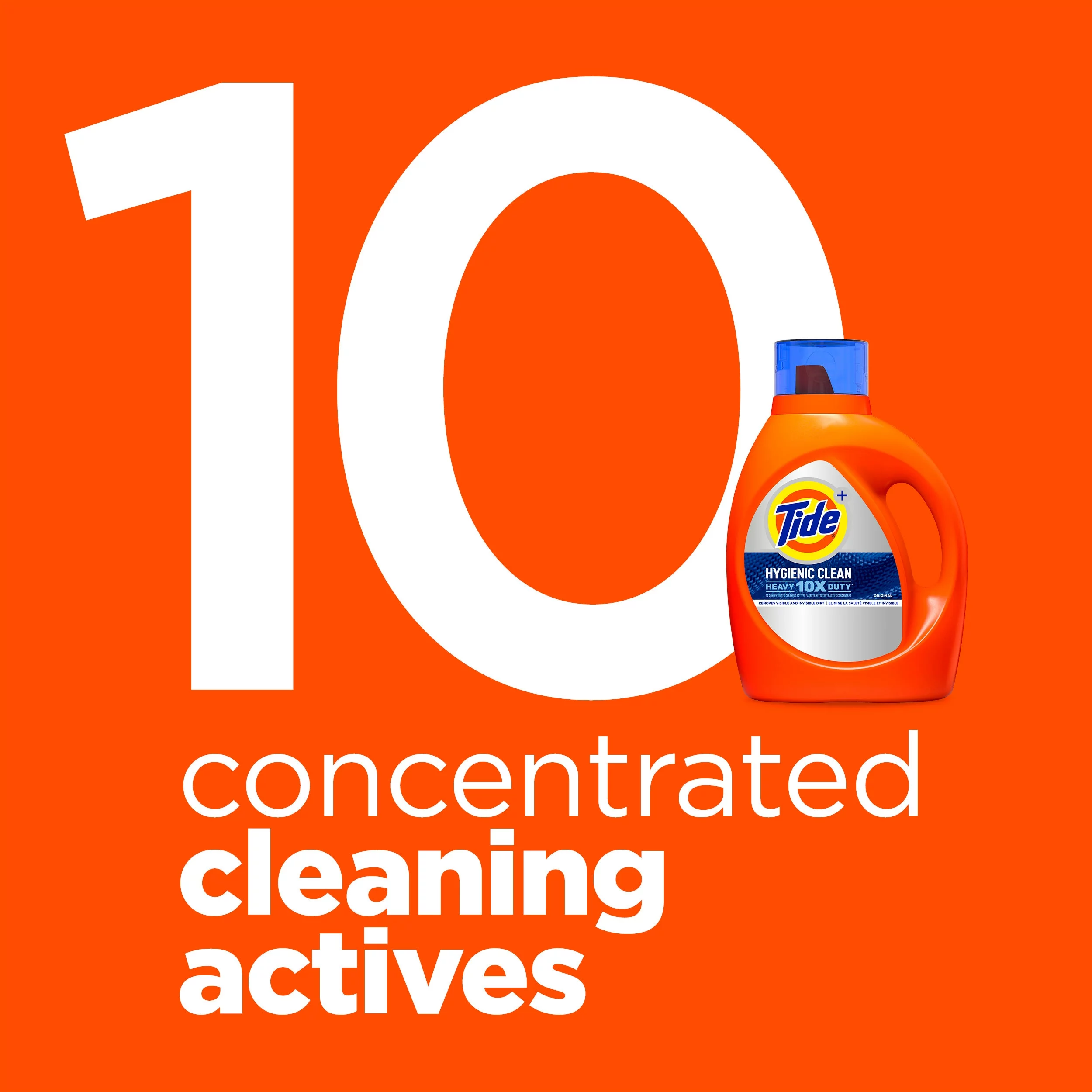 Everything leaves a trace on your clothes – from what you eat, to where you go, to what you do. But more often than not, the dirt residue and the body soils left on your garments are not necessarily visible and just because you can’t see it, does not mean it is not there. Designed to clean fabrics down to the microscopic level, tide hygienic clean heavy 10x duty liquid laundry detergent removes both visible and invisible dirt from your garments, giving you a clean you can trust. Containing 10 concentrated cleaning actives, tide heavy duty hygienic clean is not only the #1 stain and odor fighter detergent, it also gets between fibers to clean hidden dirt you did not even know was there.In times of great uncertainty, get a clean you can be certain about: get a tide heavy duty hygienic clean!